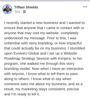 You will learn in the EvolveU Website Masterclass how to take your brand story and turn it into clear, engaging, and powerful website copy.